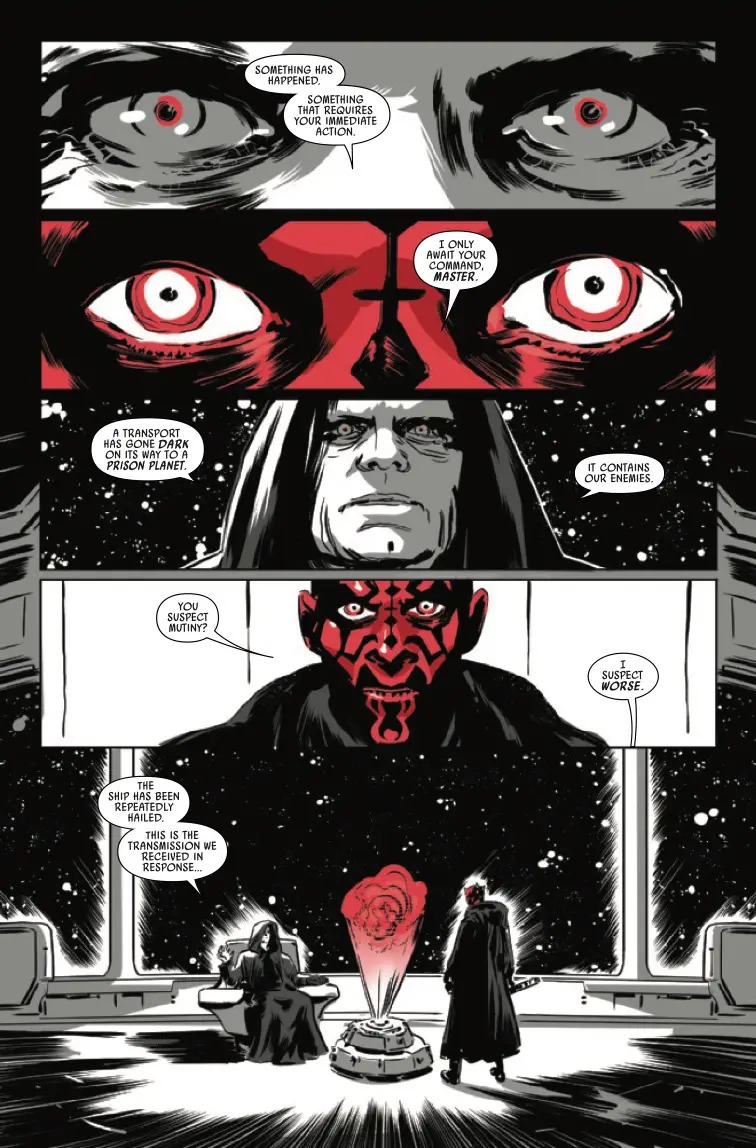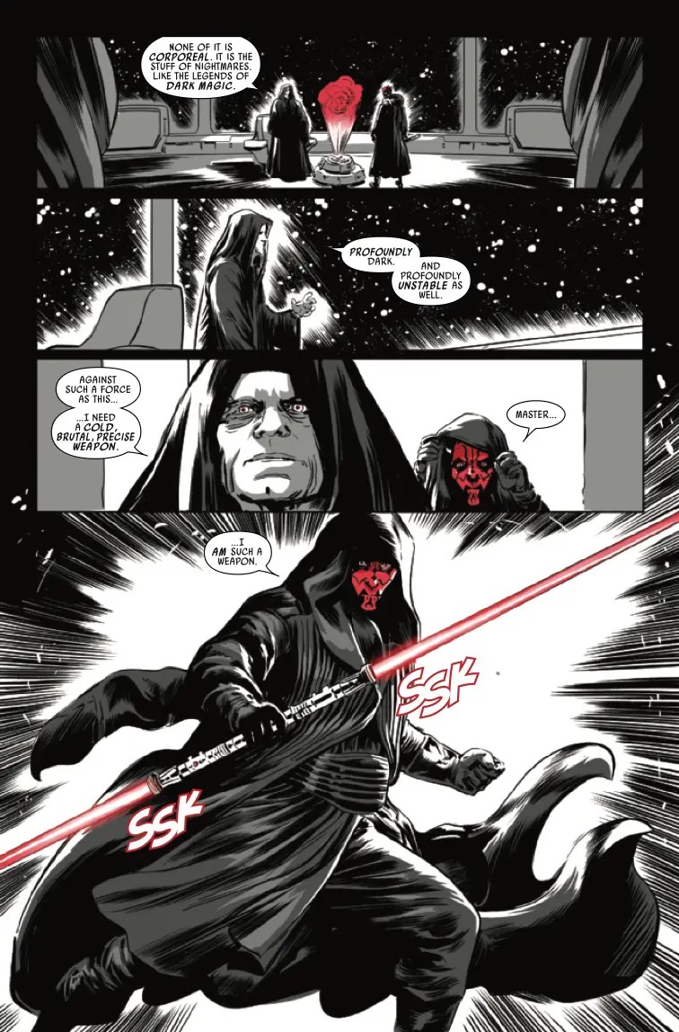 Marvel Comics launches its anthology limited series Star Wars: Darth Maul – Black, White & Red this coming Wednesday, and we’ve got the official preview of the issue for you here; check it out…