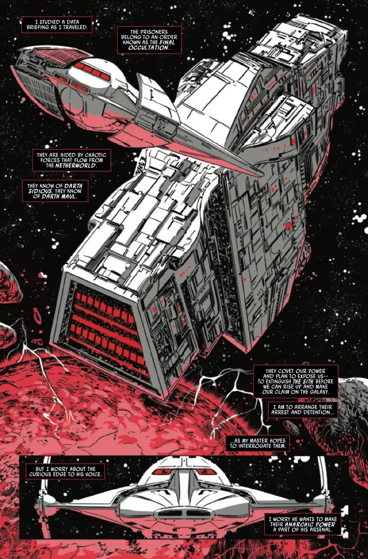 DARTH MAUL STARS IN HIS VERY OWN HORROR BLOCKBUSTER! A prison ship — transporting a cult known as the FINAL OCCULTATION — goes offline, and DARTH MAUL is sent by PALPATINE to investigate. What he finds on board is the stuff of nightmares!!! It’s up to him to stop this profoundly dark and unstable force that wishes to bring chaos to the galaxy.