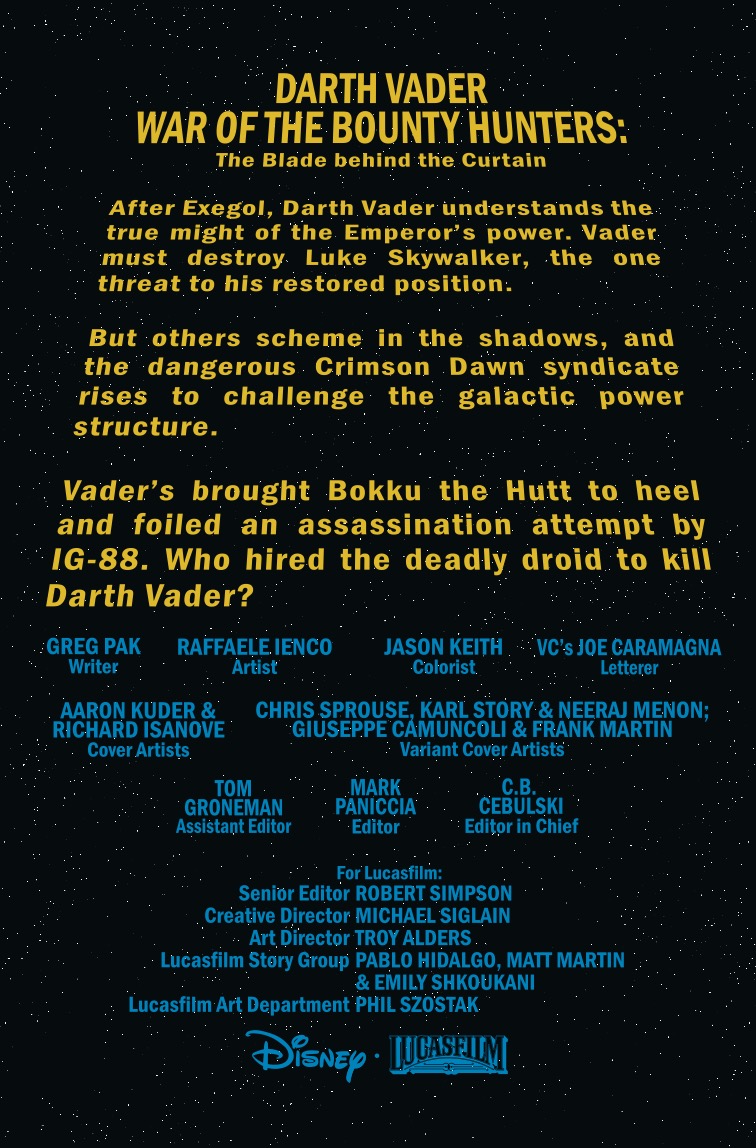 “THE BLADE BEHIND THE CURTAIN” For decades, no figure has stood as close to the EMPEROR with so much mystery surrounding her. Who is the UMBARAN? What is her role within the EMPIRE and in the WAR OF THE BOUNTY HUNTERS? And what happens when she emerges from the darkness to challenge Darth Vader himself? Featuring an unprecedented look at the inner workings of the Emperor’s inner circle — and the return of IG-88!