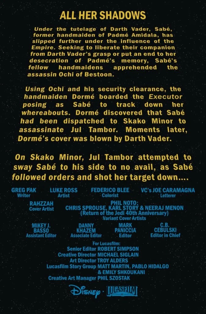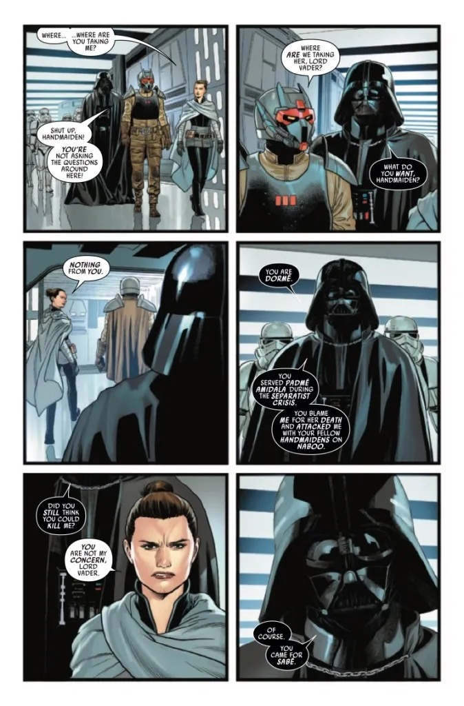 During their terrible battle at Padmé’s tomb on Naboo, the Queen’s most devoted handmaidens were no match for the fury of Darth Vader. So as they are about to face the Dark Lord again, the handmaidens have prepared. But so has Vader. Who will triumph in the rematch? And what dark price will that victory exact?