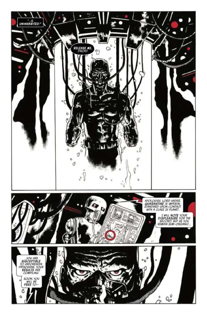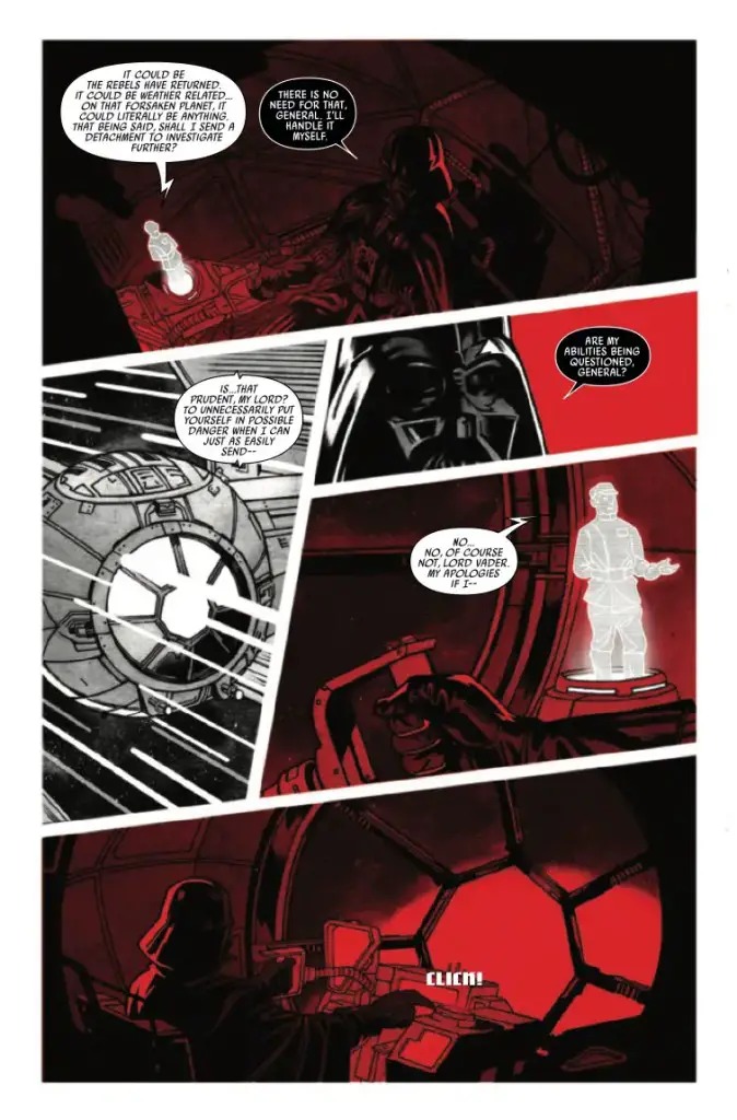 Marvel Comics releases Star Wars: Darth Vader – Black, White & Red #4 this coming Wednesday, and we have the official preview for you below…