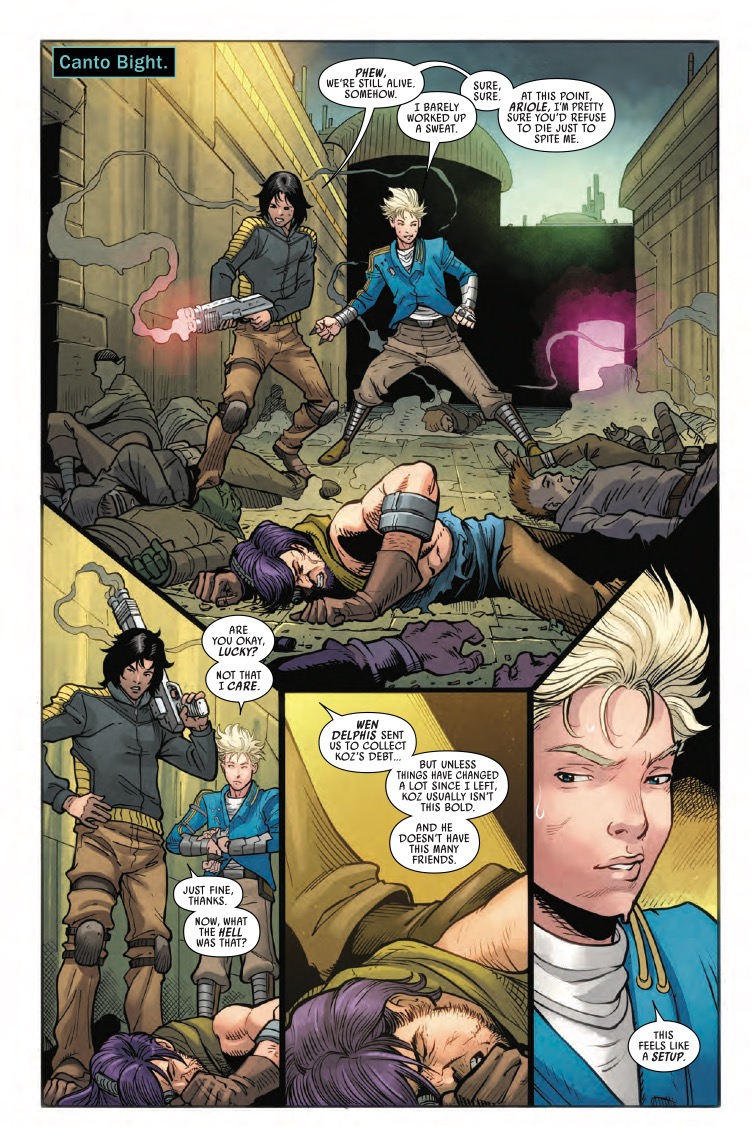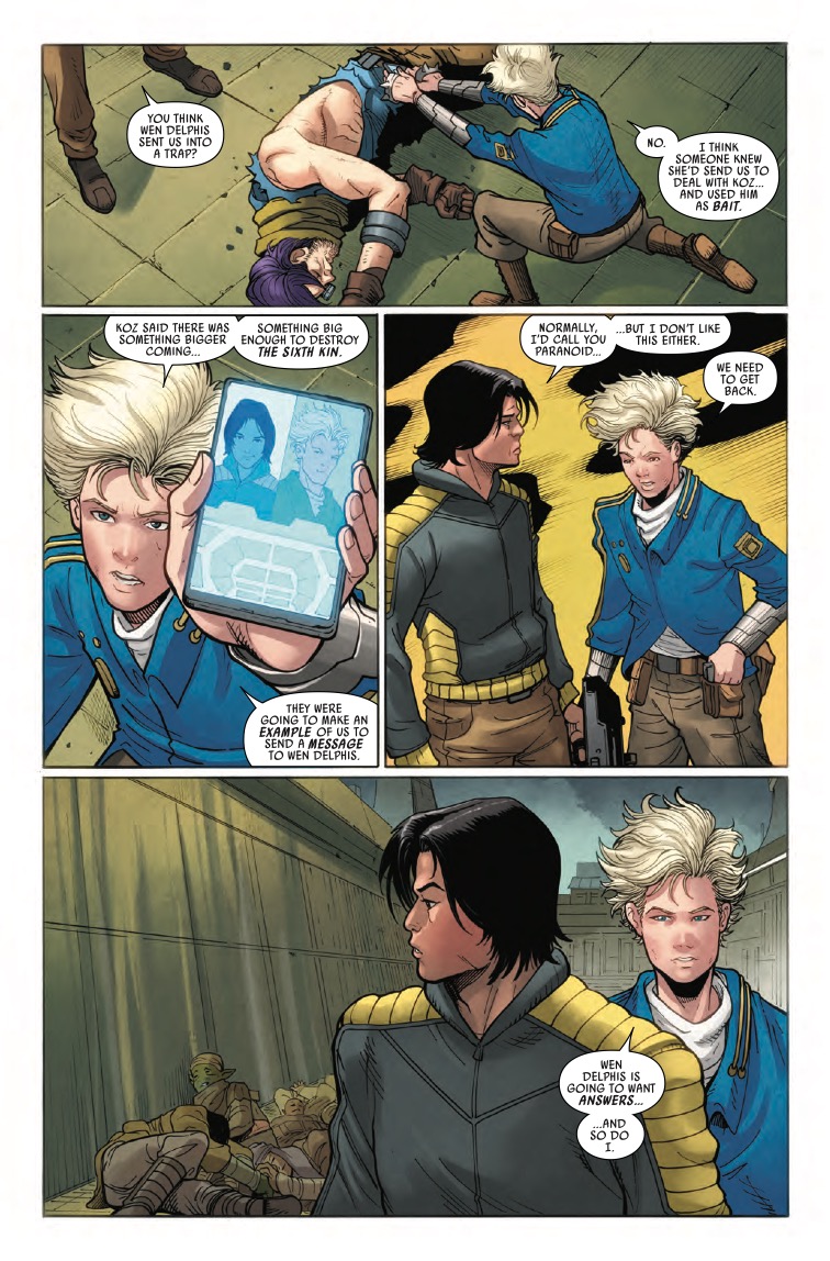DOCTOR APHRA and SANA STARROS find themselves cornered by VUKORAH and the UNBROKEN CLAN! Can they pull off a daring escape–even if that means surrendering the NIHIL HYPERDRIVE? And what sets them on a collision course with one of the most deadly BOUNTY HUNTERS in the galaxy?