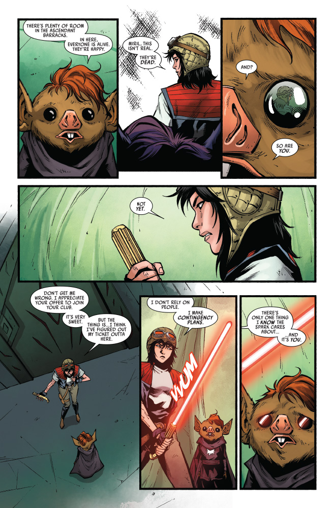 Friends and enemies. Sana Starros and her allies have cornered the Spark Eternal! She’s determined to bring Doctor Aphra back, no matter what it takes! But will it be enough? Or will it destroy Sana, Aphra…and everyone they love?