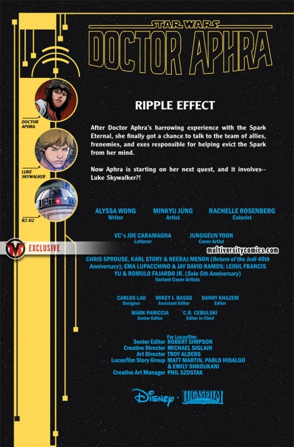 LUKE SKYWALKER: FRIEND OR FOE? After the fallout of HIDDEN EMPIRE, DOCTOR APHRA is at a crossroads. Who better to help her with that than…LUKE SKYWALKER?!