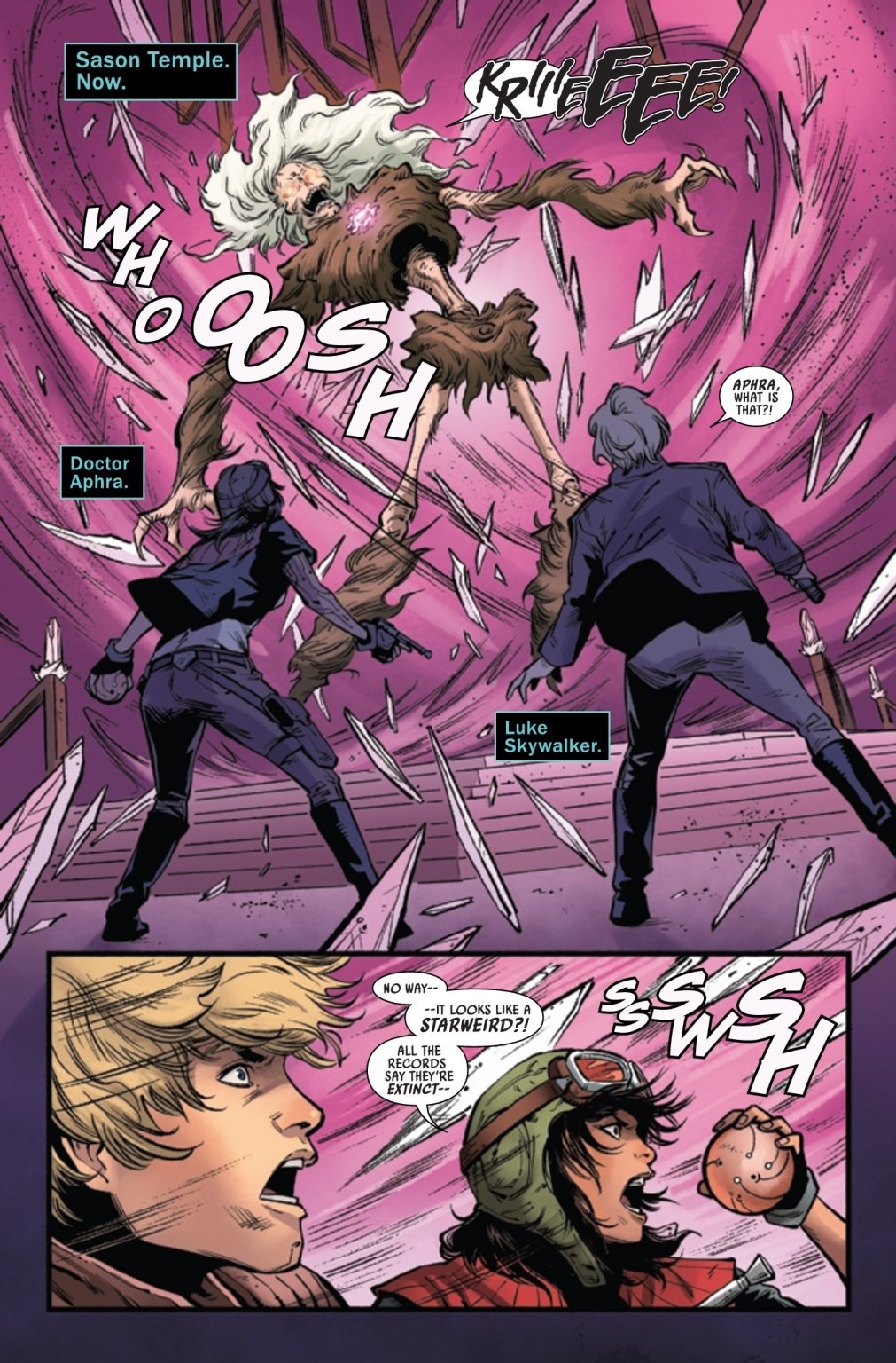 ENTER THE STARWEIRD! Long ago, Jedi Masters SHAAK TI and AAYLA SECURA sealed away a GREAT AND TERRIBLE POWER…a horrifying, ancient creature that RESONATES WITH THE FORCE …and DOCTOR APHRA and LUKE SKYWALKER have just released it!