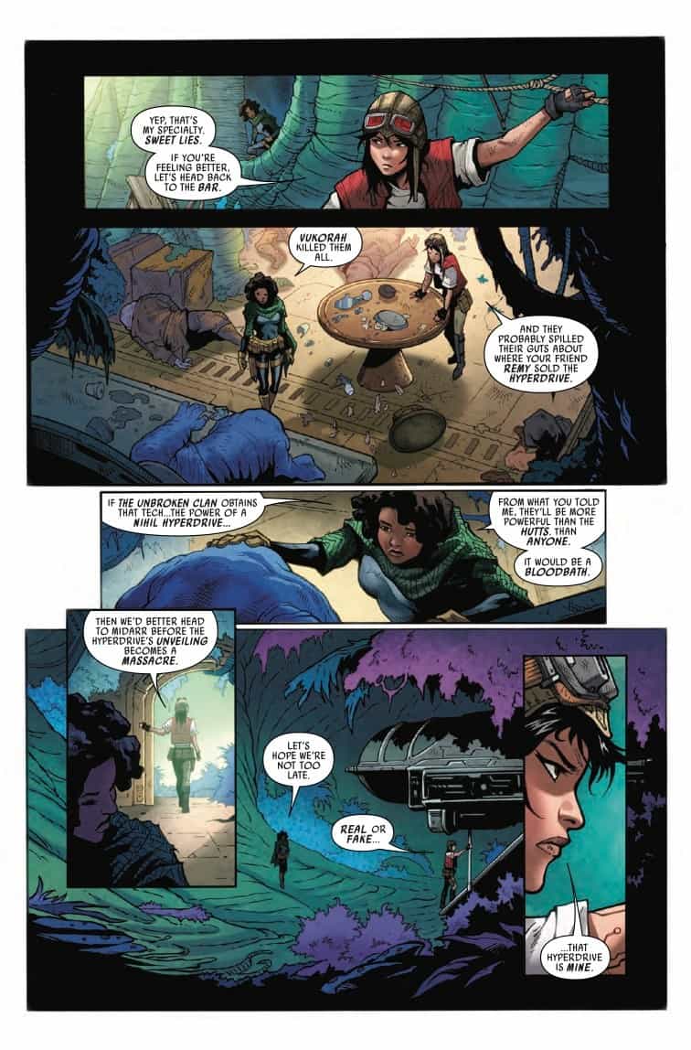 LOST TECH! CRIME SYNDICATES! ASSASSINS! DOCTOR APHRA and SANA STARROS’ search for the NIHIL HYPERDRIVE gets deadlier as GENERAL VUKORAH and THE UNBROKEN CLAN enter the race for possession! What powerful secrets of the HIGH REPUBLIC era could the lost technology hide? Meanwhile, JUST LUCKY and an old flame are forced to work together — and walk straight into an ambush!