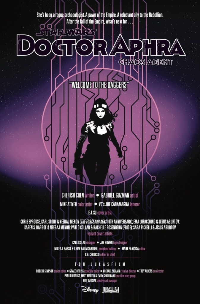 Star Wars: Doctor Aphra – Chaos Agent #1 goes on sale on June 18th, priced $4.99.