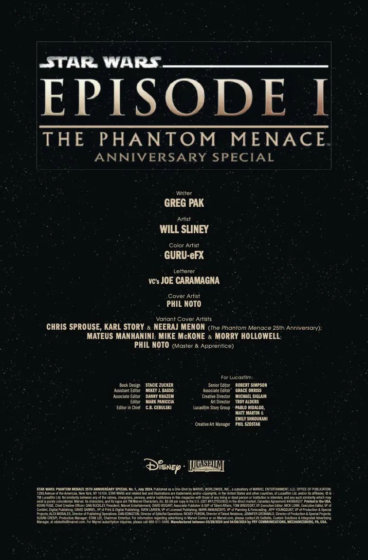 Marvel Comics marks the ‘Ani’ of Episode I this week with the release of Star Wars: Episode I – The Phantom Menace 25th Anniversary Special, and you can take a look at the official preview below…