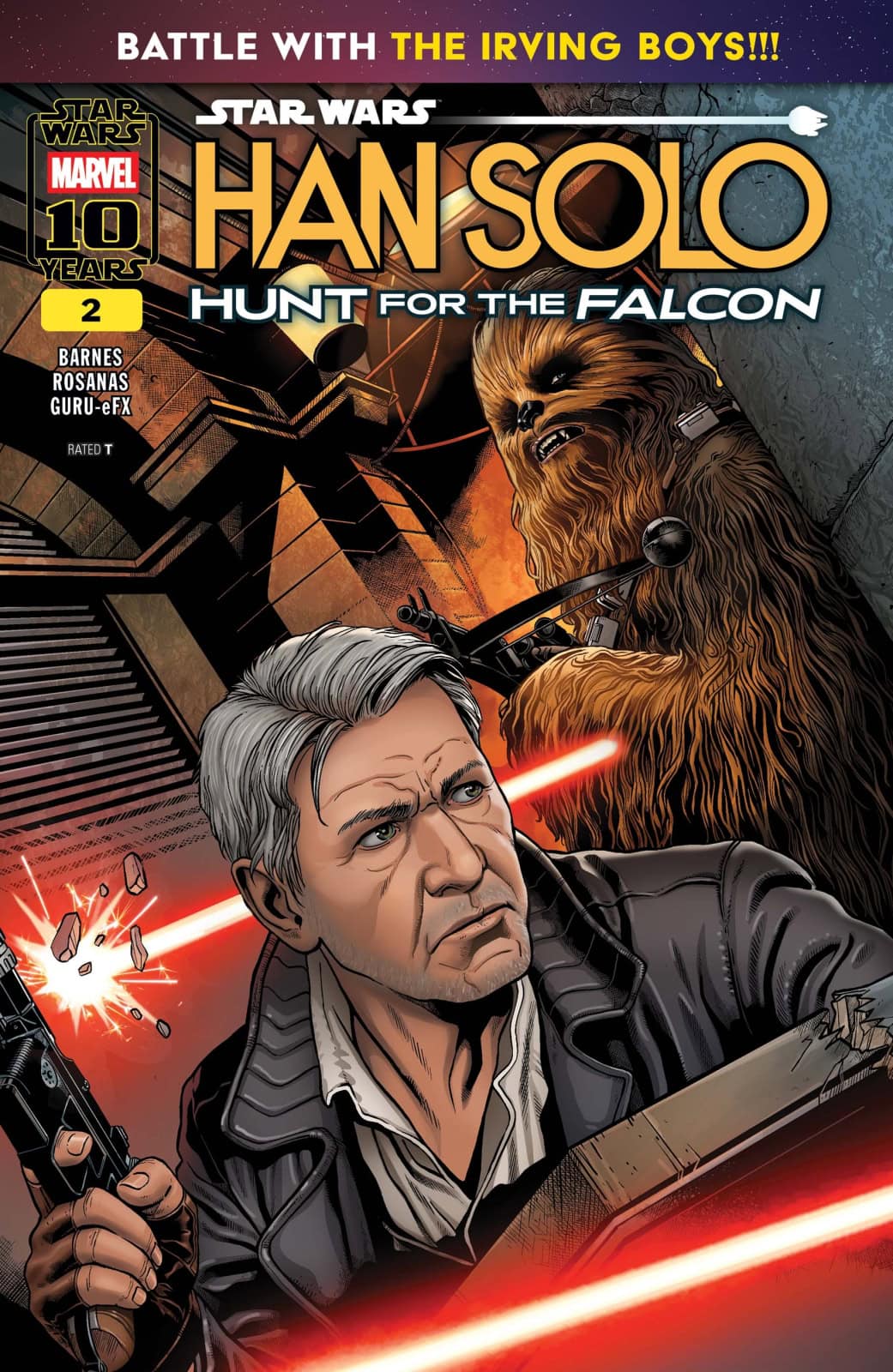 HOT ON THE TRAIL OF THE FALCON! HAN SOLO and CHEWBACCA continue their search for the Falcon and face RAPTOR DROIDS along the way! DUCAIN is in for a beating when Han and Chewie find him! And how are the IRVING BOYS wrapped up in this intergalactic chase?!