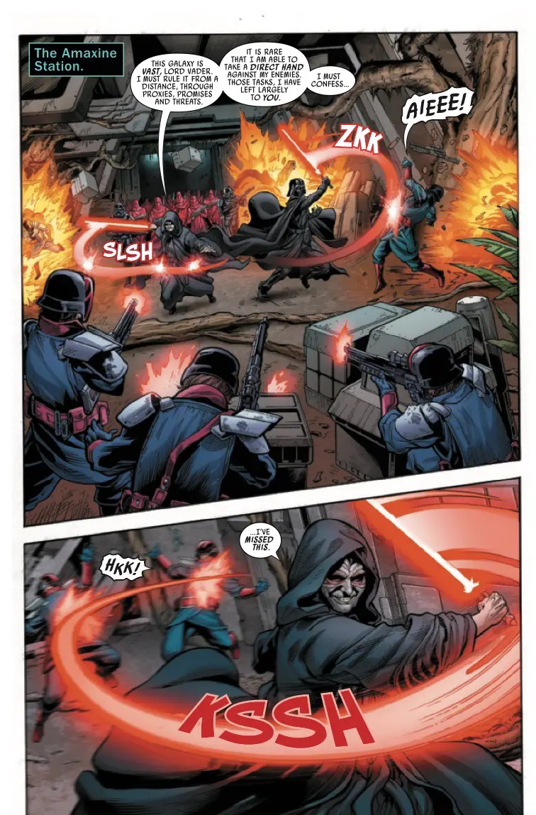 The Galaxy-Shattering Conclusion to the Crimson Dawn Saga™ is out this coming Wednesday as Marvel Comics releases Star Wars: Hidden Empire #5, and you can get yourself a sneak peek below with the official preview…