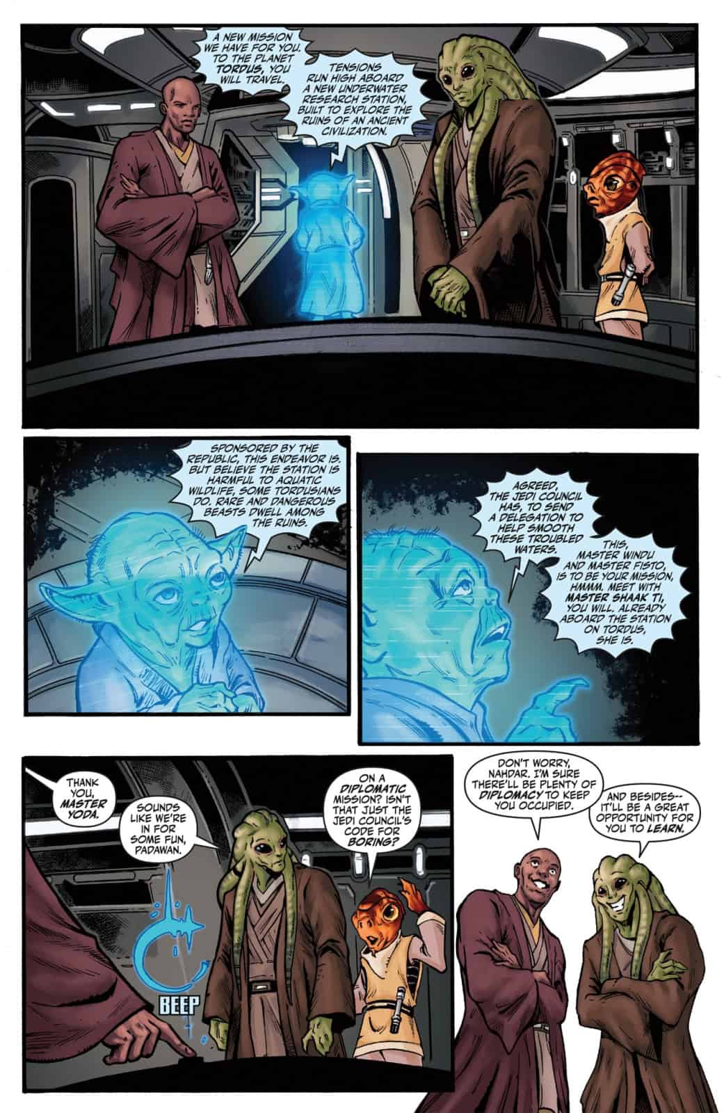 Jedi Master Kit Fisto has been sent to the ocean planet Torbus, alongside Mace Windu and Shaak Ti, to investigate a controversial underwater research facility. But when disaster strikes, his diplomatic excursion quickly becomes a rescue mission! Kit Fisto and his fellow Jedi must race against the clock to save innocent lives from the hungry leviathans that circle in the depths.