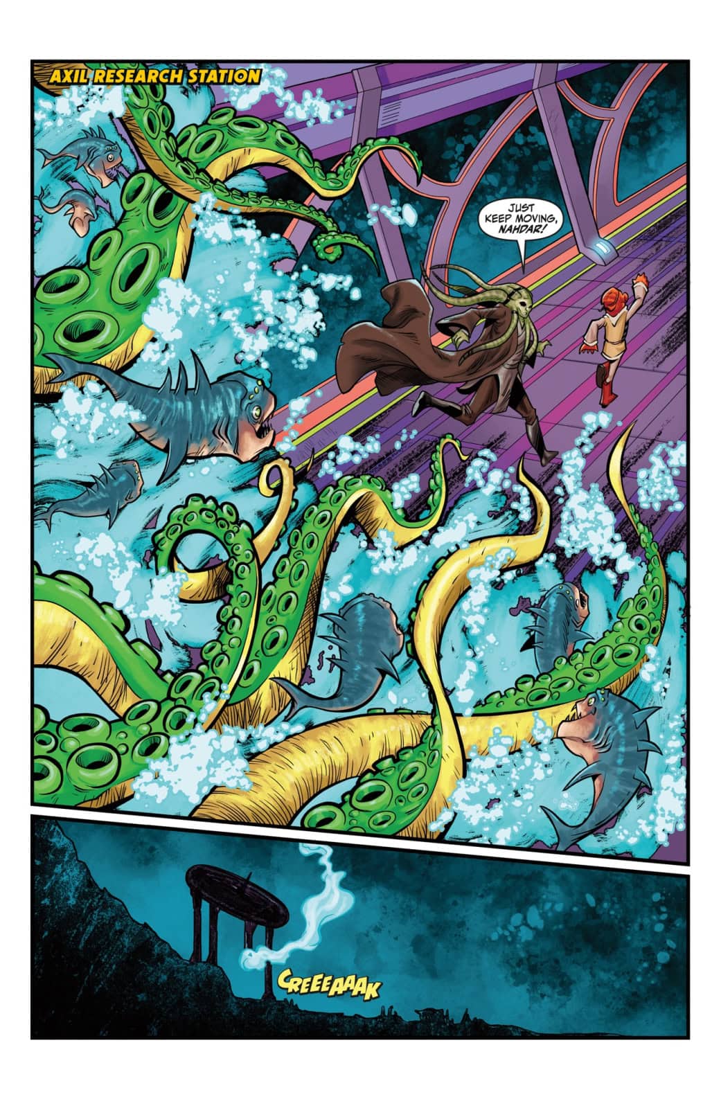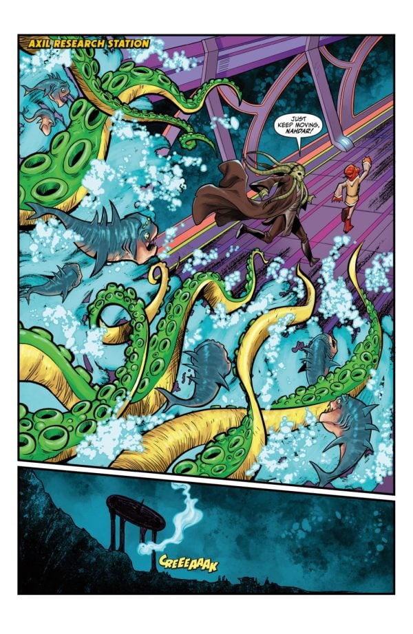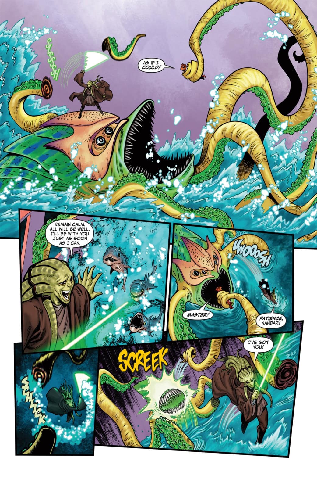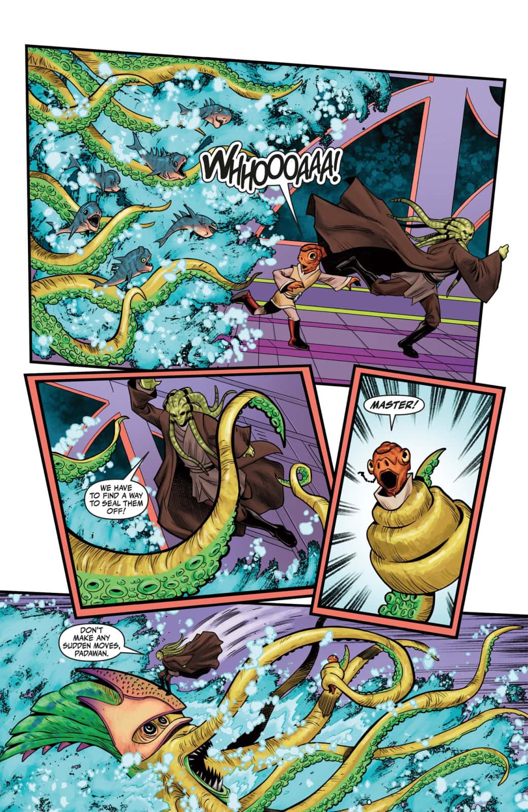 The situation on board Axil Research Station is dire! Water floods the base as the Jedi try desperately to stop the structure from sinking into the monster-infested depths. Amidst the rescue efforts, Kit Fisto increasingly suspects that this disaster is no accident, and that the perpetrators may still be on board the station…
