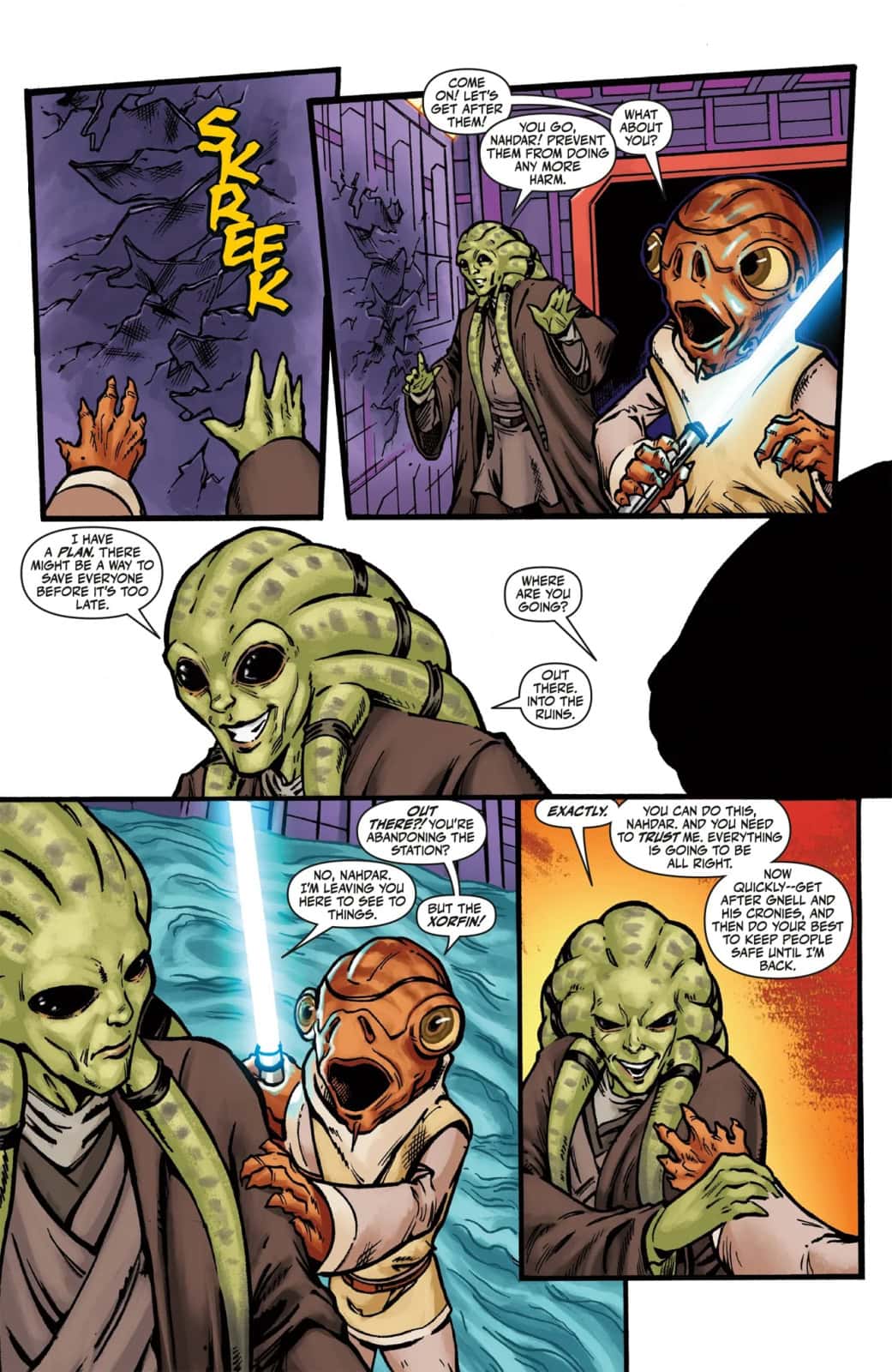 After making a startling discovery about the cause of the disaster, Jedi Master Kit Fisto dives to the sea floor in a last-ditch effort to rescue those trapped on the sinking Axil Research Station. Among the submerged ruins, he comes face-to-face with the fearsome Xorfin. Can Fisto best the monsters and save the station, or will the remaining researchers become leviathan food?