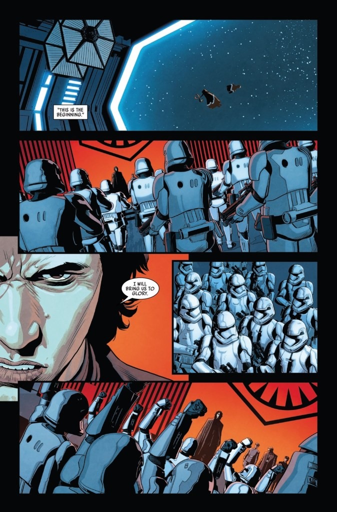 DARTH VADER’S SHADOW EXTENDS INTO…THE RISE OF THE FIRST ORDER! The reign of SUPREME LEADER KYLO REN begins! Kylo’s dark obsession leads him to MUSTAFAR! What secrets does FORTRESS VADER hold for the young tyrant? And what face from the past will guide him on his quest?