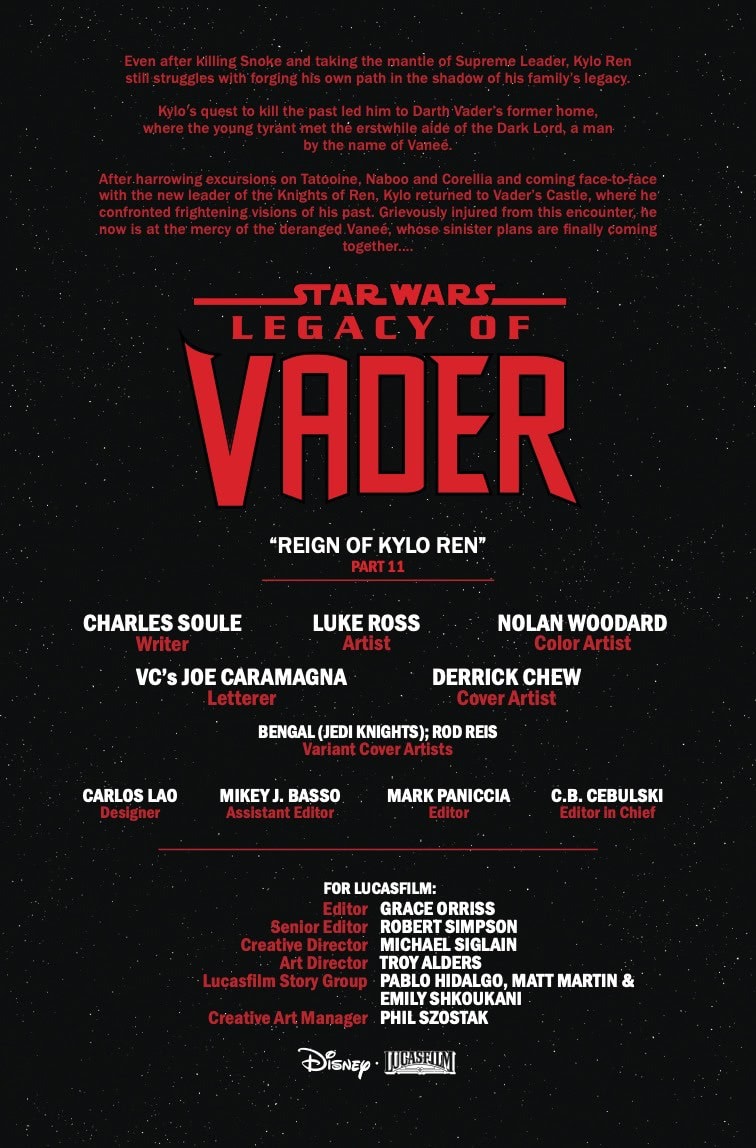 KYLO REN IN THE PITS OF MUSTAFAR! As VANEÉ’S unhinged plans come together, KYLO REN is put to the ultimate test! The legacy of VADER comes full circle in physical form as Kylo is forced to don his grandfather’s helmet! Can Kylo survive the deadly depths of VADER’S CASTLE?