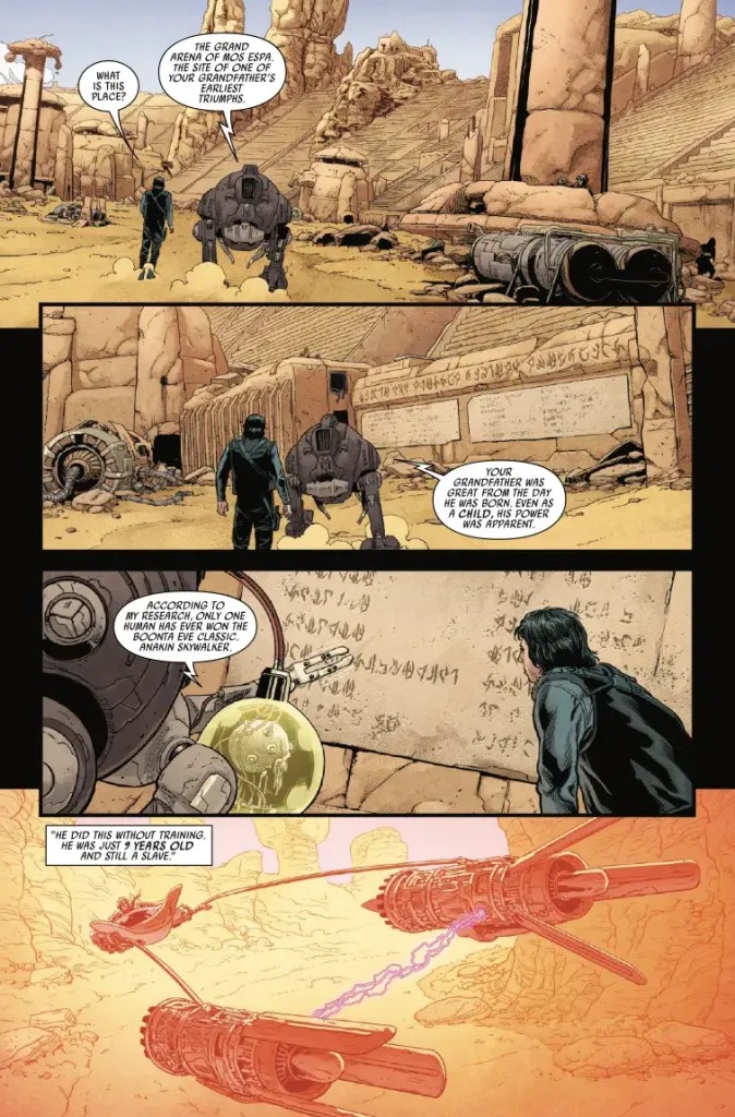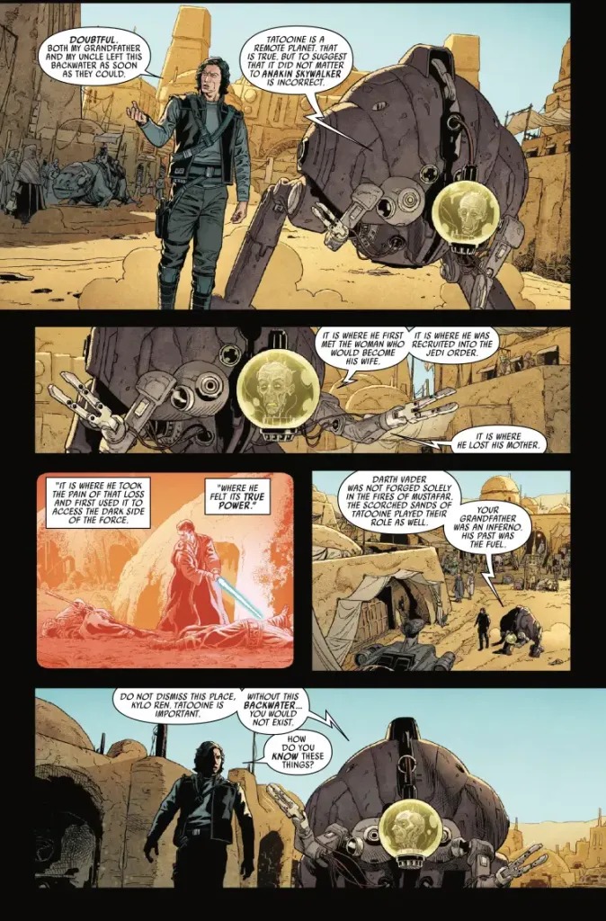 A RETURN TO TATOOINE! KYLO REN seeks out the home planet of his grandfather, ANAKIN SKYWALKER! The young tyrant must go up against GARDULLA THE HUTT and her guards…and a RANCOR! What secrets of the past blow in the harsh sands of MOS ESPA?