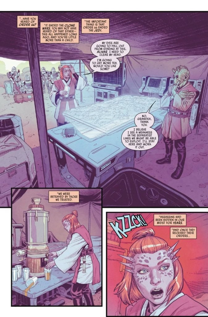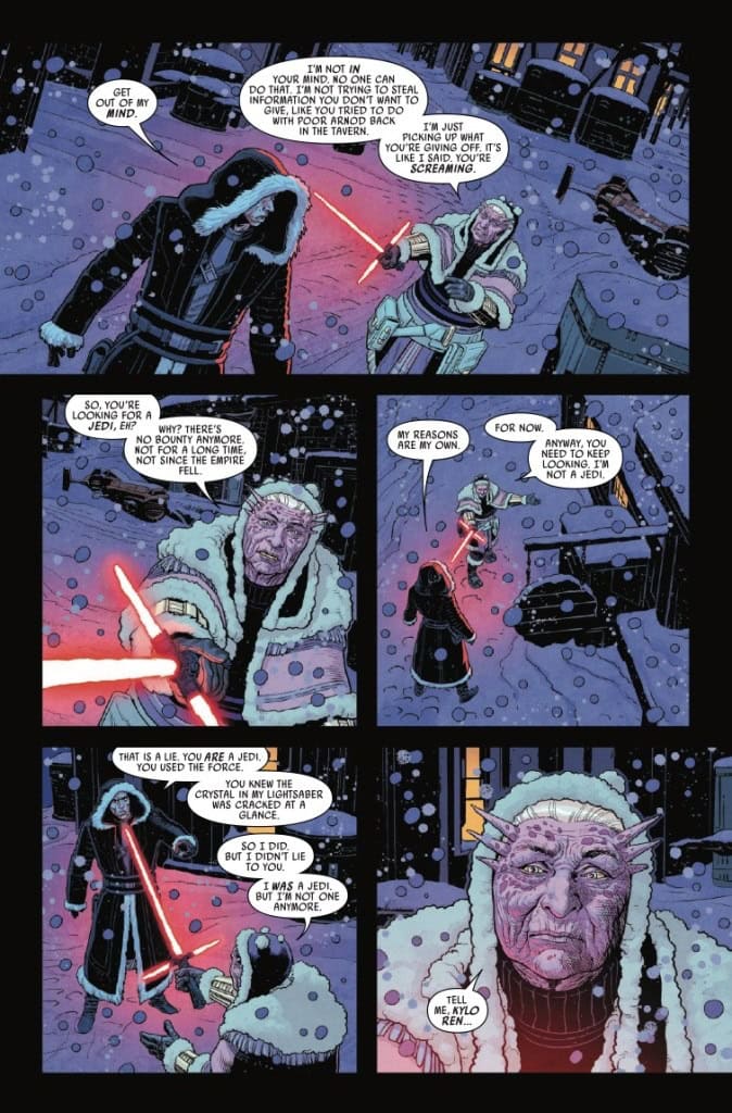 KYLO REN TAKES ON A SURVIVOR OF ORDER 66! On a distant, snow-covered planet, KYLO REN has met his match against former JEDI GRANDEA! Witness flashbacks to the CLONE WARS ERA and GRANDEA’s daring use of the FORCE in the face of ultimate betrayal! Will the survivor of the worst tragedy to befall the Jedi be able to change Kylo’s evil ways?