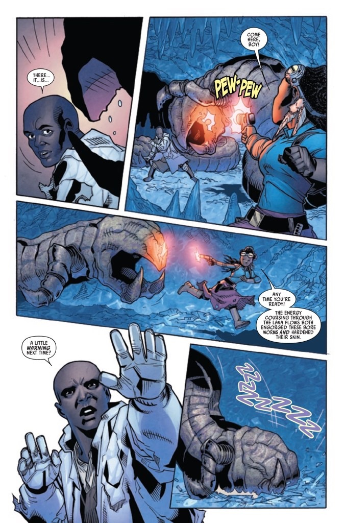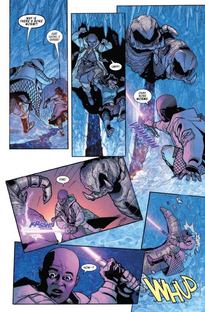 INTO THE STORM AGAINST THE BORE WORM! MACE WINDU & AZITA CRUZ must work together to escape the menace of the BORE WORM! But what else lies in their path and who is following them? And what is COAXIUM ULTRA?
