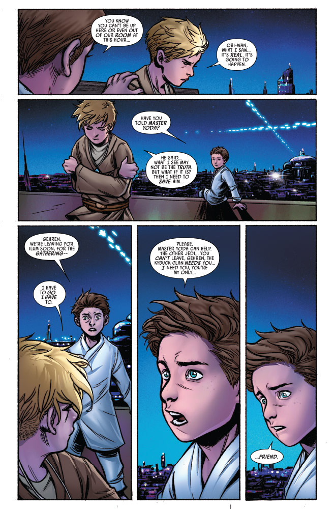 Fast approaches the ultimate destiny of one of the Jedi’s most renowned masters! As he spends his final days in the remote deserts of Tatooine, Obi-Wan Kenobi takes time to reflect on — and record — key moments of a heroic life long-lived. Writing in old leather-bound journals from his hermit’s hut, Obi-Wan remembers his days as a young Jedi Initiate, his trials as a Padawan, the crucible of Jedi Knighthood and the Clone Wars, and some of the earliest challenges he faced as a true Master of the Force! In this tale, Obi-Wan considers a watershed Youngling adventure he narrowly survived on Coruscant when he was but eight years of age…This is just the beginning of his Jedi journey!