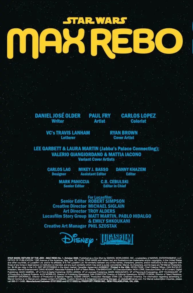 Star Wars: Return of the Jedi – Max Rebo #1 goes on sale on August 9th, priced $4.99.