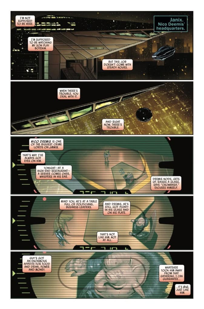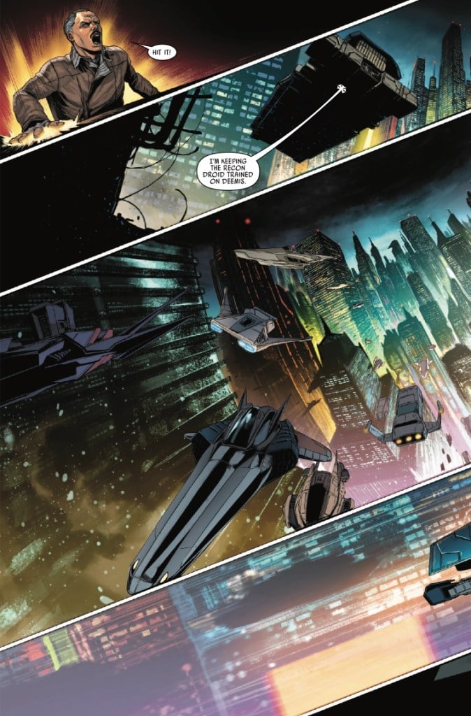 THE UNDERWORLD EXPLODES WITH SCUM AND VILLAINY AS MAUL LOOMS IN THE SHADOWS! Ruthless mercenaries are looking to unload IMPERIAL treasure! Crime lord DEEMIS will stop at nothing to get it! Will CAPTAIN LAWSON be able to thwart the exchange of the smuggled fortune?