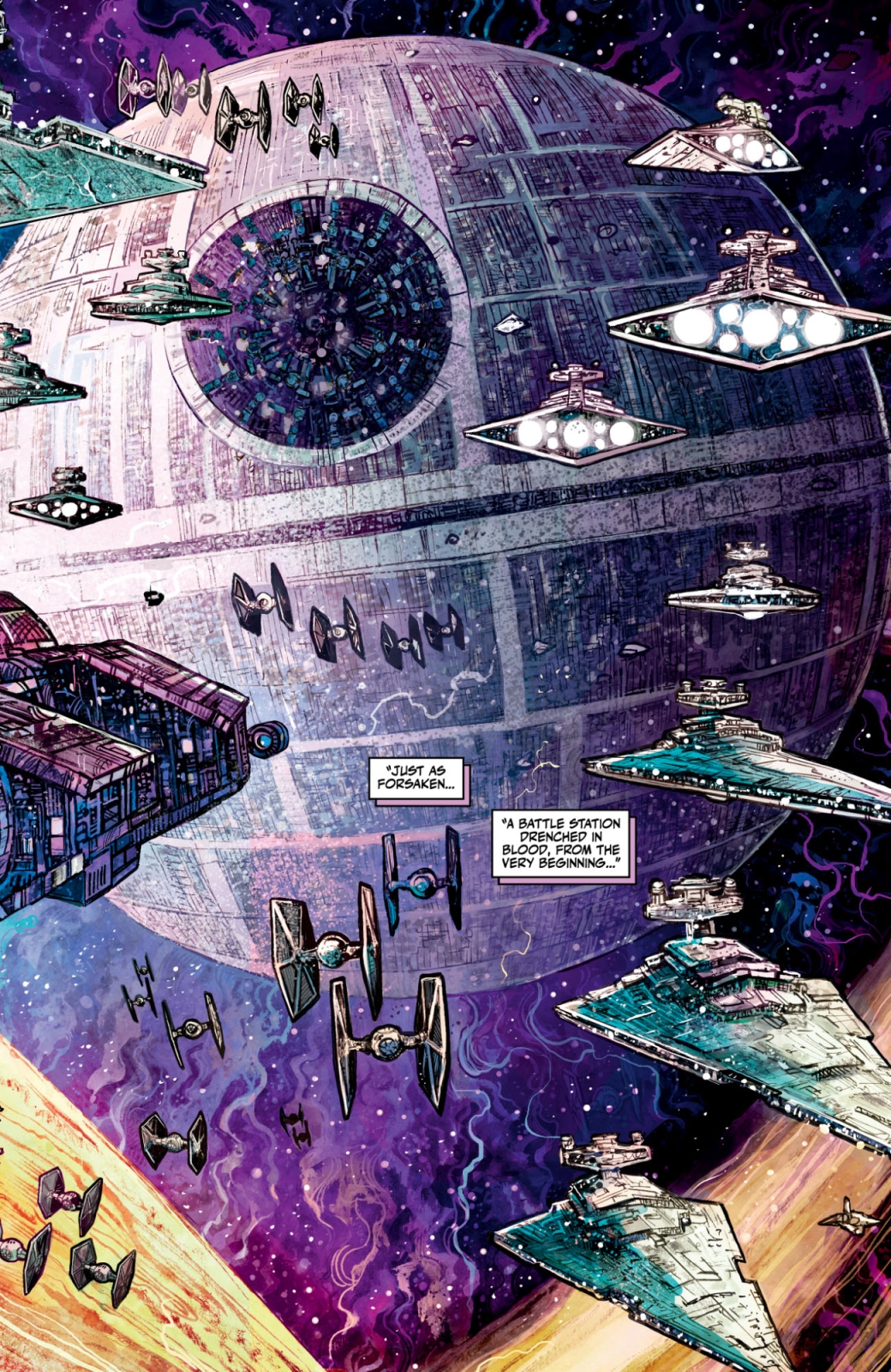 From the destruction of Alderaan to the shadow of the Forest Moon, alien creatures, phantom star ships, deadly artifacts, and vengeful spirits all stalk the halls of the infamous space station, as writer Cavan Scott (Tales from the Rancor Pit, Star Wars: The High Republic) and an all-star team of artists (Eric Powell, Soo Lee, Vincenzo Riccardi, Ingo Roemling, & Juan Samu) reveal the hidden evils that lurked within charred remains of the ultimate firepower in the universe.