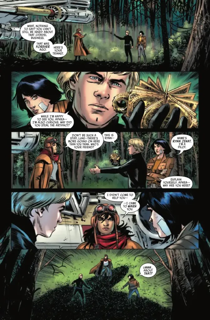 LUKE AND DOCTOR APHRA JOIN FORCES TO FIGHT OFF A SURPRISE ATTACK AS THE REMAINING IMPERIALS PLOT THEIR NEXT ATTACK! LUKE SKYWALKER must battle his way through a gang of Force-focused zealots! A faction of Imperial survivors plot to return the Empire to its past glory — and hint at a huge struggle to come! Can LUKE survive against a giant… swamp rat?! As the defiant Imperial consolidates his power and allegiances — he discovers a traitor!