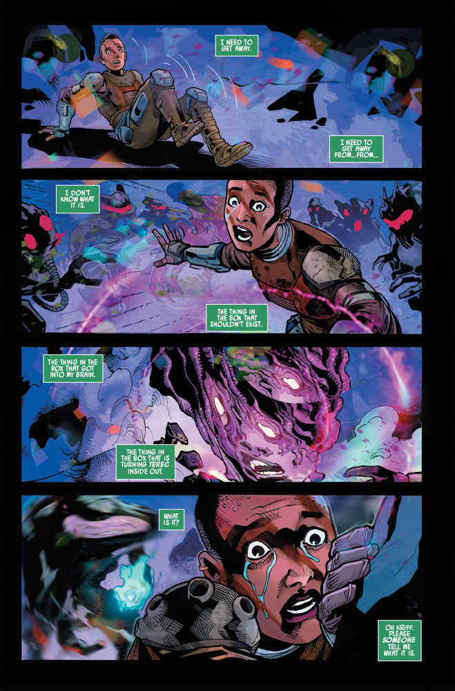 THE HUNT FOR LOURNA DEE CONTINUES! The NIHIL have unleashed a nameless terror against the Jedi. MARSHAL AVAR KRISS is more determined than ever to bring LOURNA DEE to justice, but does STELLAN GIOS and the JEDI COUNCIL agree? As KEEVE TRENNIS struggles with what she experienced on the Nihil base, the Jedi prepare for war. PLUS, the truth about SSKEER is finally revealed – but what does it mean for his future?