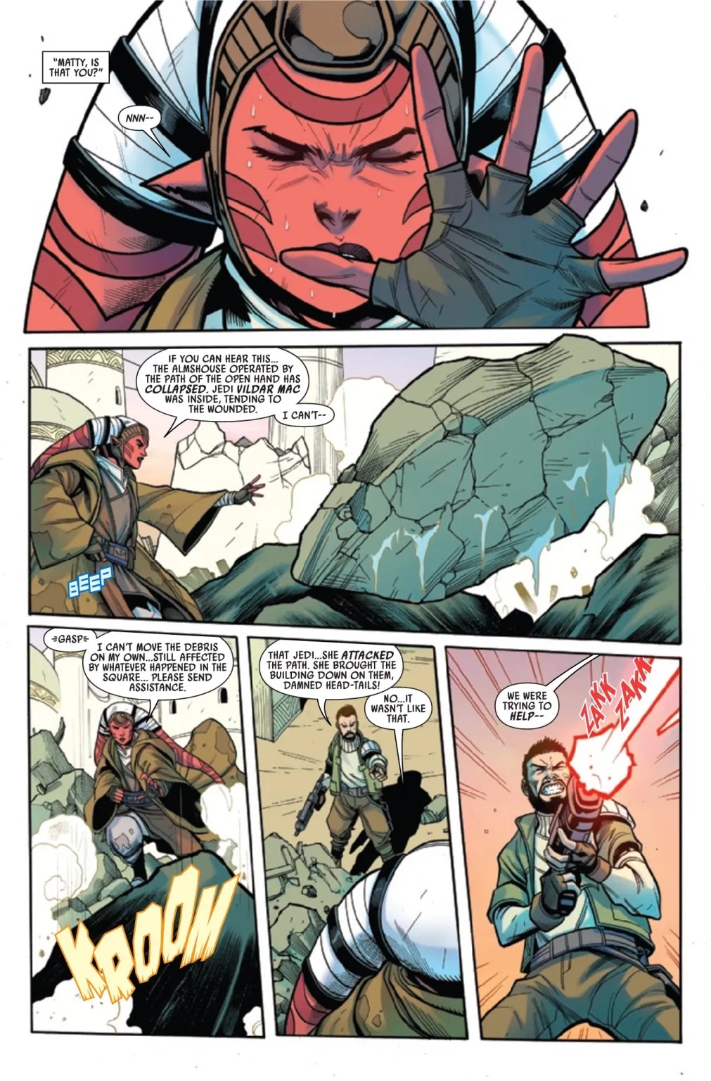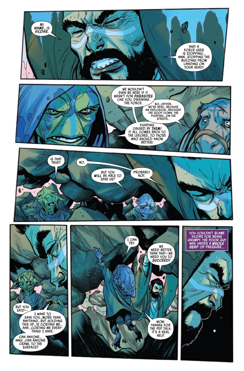 THE BATTLE OF JEDHA CONTINUES! As Tey Sirrek defends the Temple of the Kyber, Vildar Mac is buried alive, with only his belief in the Force to keep him alive. But Vildar is a Jedi beset by doubts, a man scarred by a past he should’ve forgotten years ago. Who can come to his aid as the Holy City tears itself apart? The Force is with Vildar, but is he one with the Force?