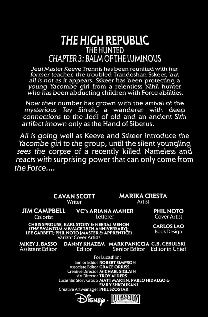 BALM OF THE LUMINOUS! DEATH at the heart of NIHIL SPACE. HOPE in the midst of despair. JEDI MASTER KEEVE TRENNIS has gathered a band of battle-weary Jedi, pirates and wanderers, but how long will they remain united as the CHILDREN OF THE STORM make their move? Plus: The Nihil Minister of Advancement revealed: BARON BOOLAN makes his presence known!