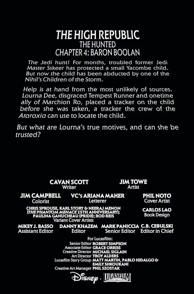 ENTER… BARON BOOLAN! TEY SIRREK, LOURNA DEE and SSKEER on a dangerous mission. KEEVE TRENNIS and the other JEDI helpless to assist. The NIHIL’S mysterious MINISTER OF ADVANCEMENT finally revealed…along with his diabolical experiments. PROTECT THE PATH!