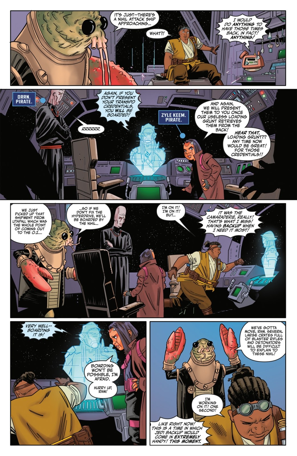 Eriadu is under siege! The fate of the planet lies with the ruling Tarkin family, and nobody knows whose side they’re on. Will the Tarkins join forces with the Republic resistance or capitulate to the vile Nihil? While the bureaucrats wheel and deal, Padawan Ram Jomaram gathers a team of underdogs to launch a rescue mission deep within the Occlusion Zone!