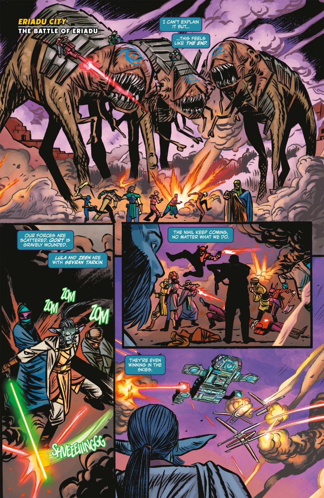 Eriadu is a battleground! Qort, Farzala, and their allies fight valiantly against the Nihil as they vie for control of the planet and the galaxy! But our heroes’ brave yet meager fighting force is drastically outnumbered by Marchion Ro’s vast army, bolstered by merciless droids and savage war beasts. Will help arrive for the forces of light and life before they are overwhelmed?