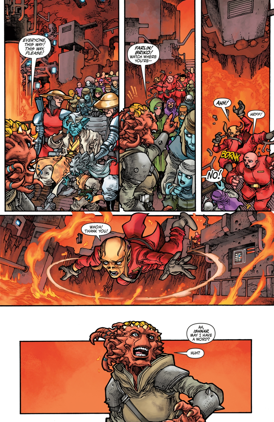 As Battle of Eriadu continues, the leader of the resistance, Jedi Knight Farzala Tarabal is faced with an impossible decision: risk the lives of his friends, or forfeit their chances of defeating the Nihil. It’s a dilemma that sees Farzala descend to a dark place, only to discover a surprising confidant.