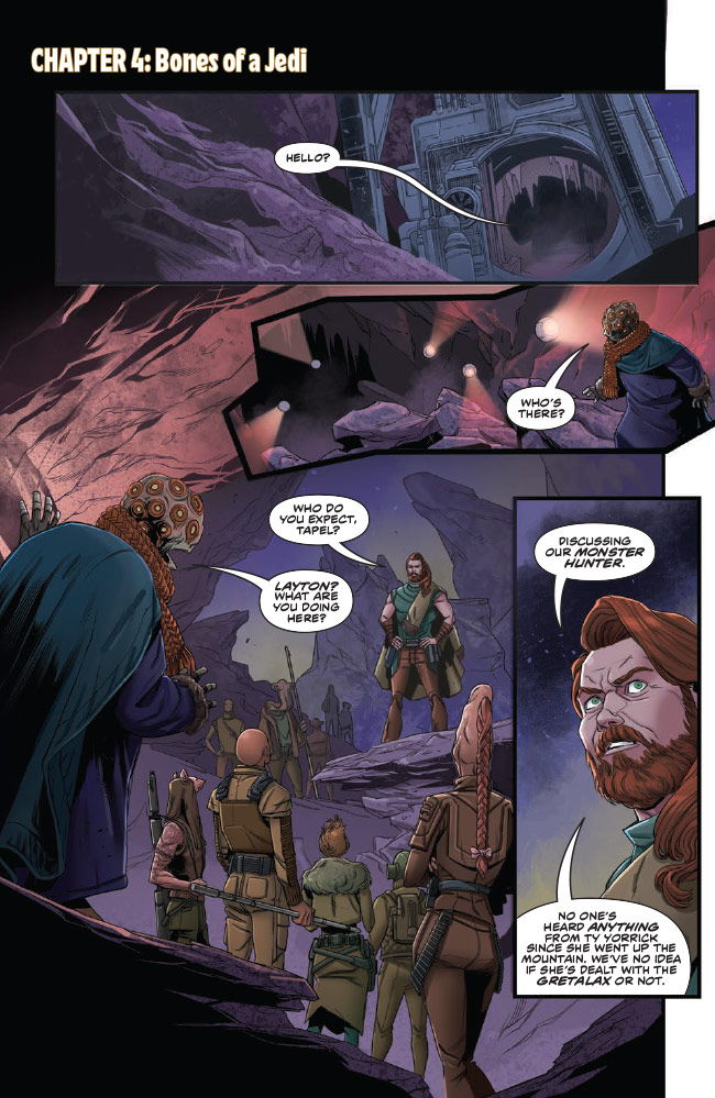 Follow former Jedi turned saber-for-hire monster hunter Ty Yorrick in this adventure-packed High Republic miniseries by Cavan Scott and Rachael Stott! In the final chapter, Ty uncovers the truth deep in the Gretalax’s cave and must make a choice: the way of the Jedi or the way of the monster hunter? She must choose fast in order to protect the villagers and bring harmony to the settlement.