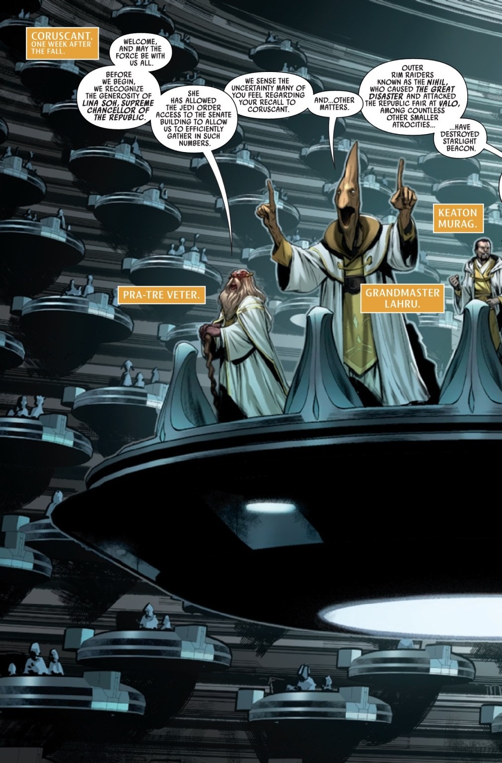 WHO LIVED? WHO DIED? ANSWERS TO THE GREATEST CATASTROPHE OF THE GOLDEN AGE OF THE JEDI! Little has been revealed about the year following the fall of STARLIGHT BEACON and the ultimate triumph of THE NIHIL…until now! THE JEDI COUNCIL, reeling from its losses, has recalled its JEDI KNIGHTS from across the galaxy and instituted the emergency measures. MASTER YODA has a plan to save the Order and the galaxy, but he must touch the dark side to achieve it…and the consequences will be grave indeed.