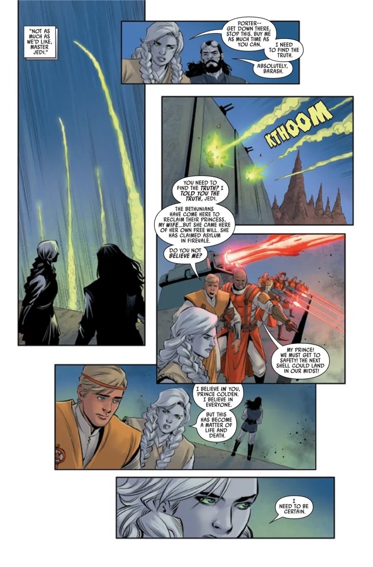 The situation on the planet Gansevor has worsened, and Jedi Masters PORTER ENGLE and BARASH SILVAIN find themselves embroiled in a conflict with no clear solution. Certainty must be found and a side chosen…but new enemies have arrived, and time is running out.