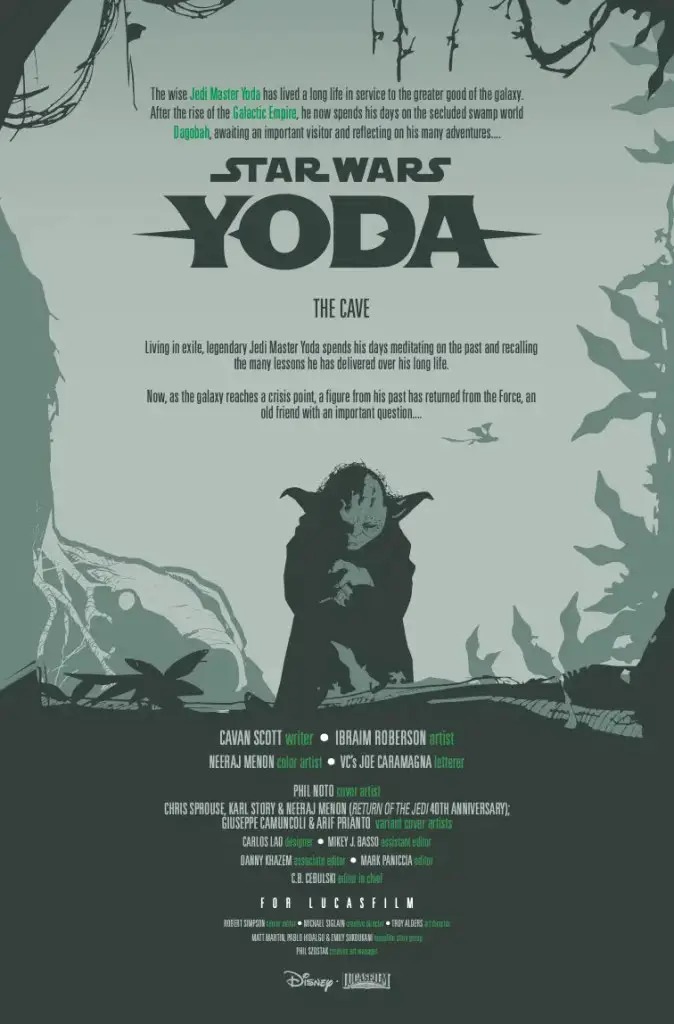 THE FINAL LESSON! After years in exile on DAGOBAH, legendary JEDI MASTER YODA is visited by a ghost of his past. Plagued by painful memories, he must enter the CAVE OF EVIL to face his ultimate fear. But will the Jedi’s greatest teacher recall the most important lesson of all?