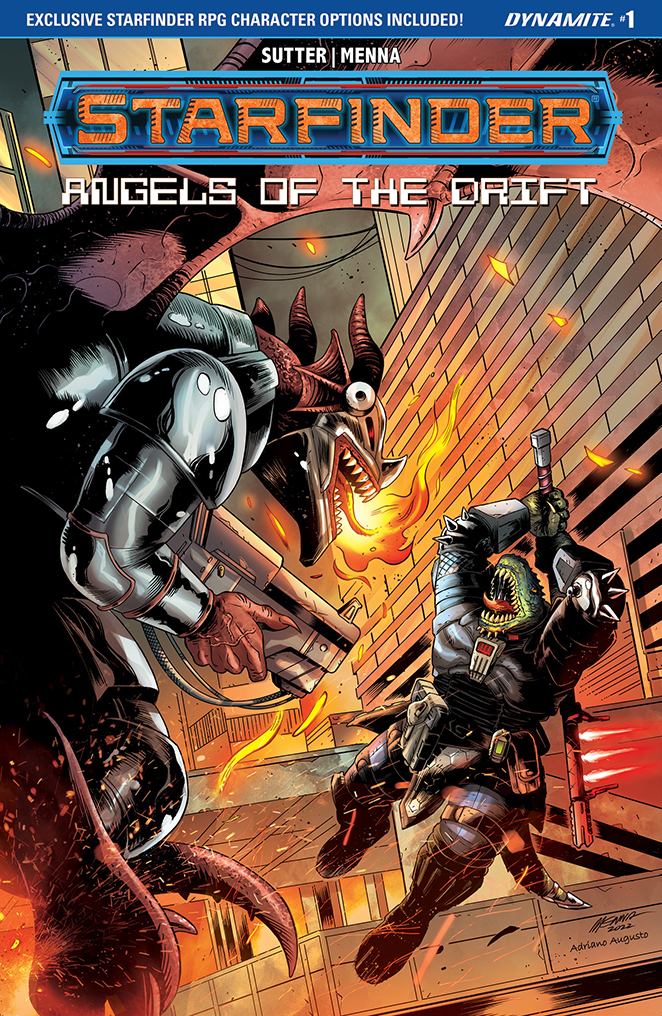 A bold crew of adventurers must race to an isolated world to stop a catastrophic war for faster-than-light technology! In the science-fantasy universe of the bestselling Starfinder Roleplaying Game, five down-on-their-luck mercenaries sign on to help a robotic avatar of the hyperspace dimension bring starship technology to a previously uncontacted planet. But with sinister forces bent on exploiting the new world, it’ll take all the heroes’ guns, wits, and magic to make it off their space station alive! From Starfinder RPG co-creator James L. Sutter (Pathfinder: Runescars) and artist Edu Menna (Army of Darkness) comes the launch of a brand new out-of-this-world adventure, with a stunning trio of fantastic covers led by series artist Edu Menna along with Richard Pace (Batman, Second Coming) and Biagio d’Alessandro (Pathfinder)!