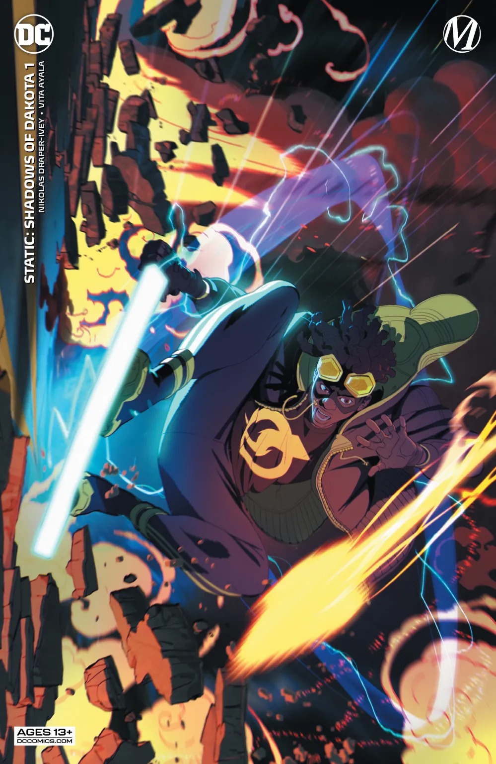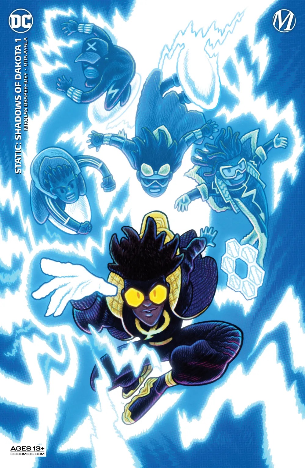 Static is back! Though Virgil and his friends might have been able to stop the government’s off-the-books prison operations in Dakota, a powerful new threat lurks in the shadows. The mysterious Ebon is cutting a bloody swath through the underworld on a single-minded quest to find his brother. Against this backdrop of exploding violence, innocent people are finding themselves in the crossfire. The breakout creative team of Nikolas Draper-Ivey and Vita Ayala have returned to make Static’s life, and Dakota City, very complicated indeed—you’ve never felt shocks like these!