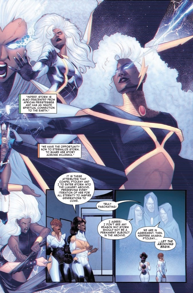 FIFTY YEARS OF STARDOM! For the first time ever, all Black creative teams join forces in a single anthology to honor the many extraordinary lives of Ororo Munroe! When intergalactic historians attempt to update their records on one of the most famous X-Men in multiversal history, they’ll find a woman too powerful to contain – and risk unleashing a side of her no one’s seen before. With appearances of fan-favorite Storms across the eras of Marvel Comics, superstar journalist and Marvel’s Voices creator Angélique Roché spearheads a celebration of one of the most beloved characters in pop culture history!