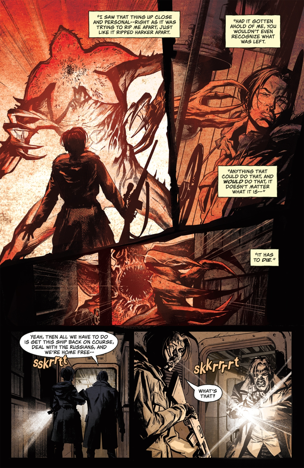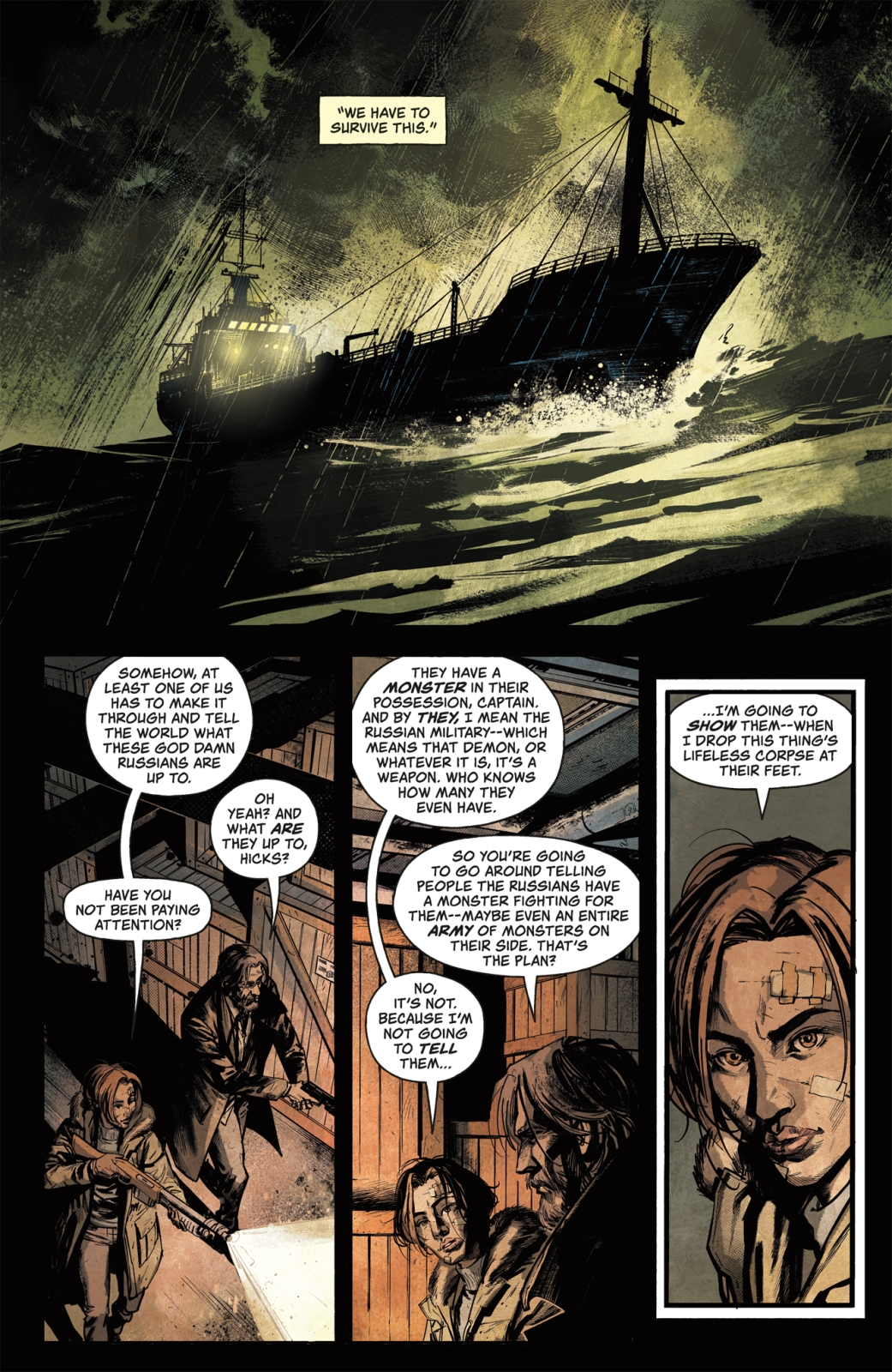Captain Jacoby and what’s left of his crew go on the hunt, determined to kill the monster aboard The Persephone. Suddenly, the ships’ navigation system goes haywire, veering off course, the crew runs the risk of being lost at sea even as they fight for their lives.