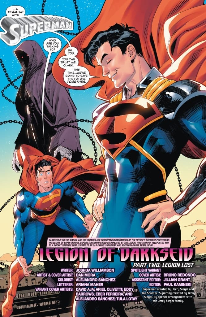 Superman and an impossible ally search the future for the lost Legion of Super-Heroes! What happened to it, and can it help in the battle against Darkseid’s Absolute Legion?