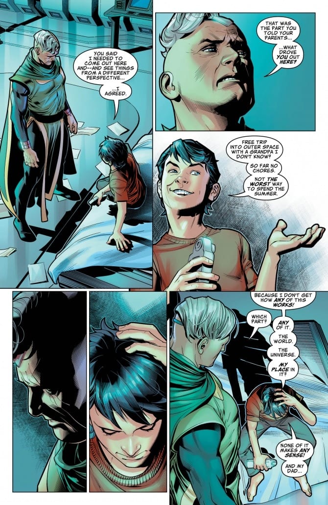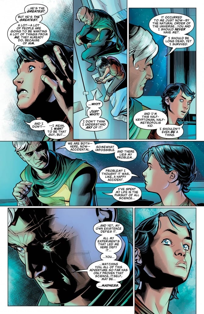 The epic secrets of Superman continue to unfold! A few months in space with his paternal grandfather Jor-El changed Jon Kent forever. With Jon now seeking help from his father, the Man of Steel must learn about the war his son and father fought together and set right the wrongs his father may have unleashed on other worlds. See what changed Superboy in such radical ways as the Unity Saga continues.