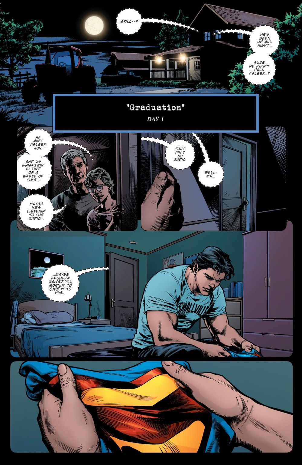 Can even Superman withstand being pushed past the point of emotional and psychological endurance? Marooned on a comet in uncharted space, the Man of Steel reflects on his humble Smallville origins as crushing emotional fatigue threatens to end his journey back—trauma which results in Lois’s struggle to reconnect with the virtual stranger in her own home.