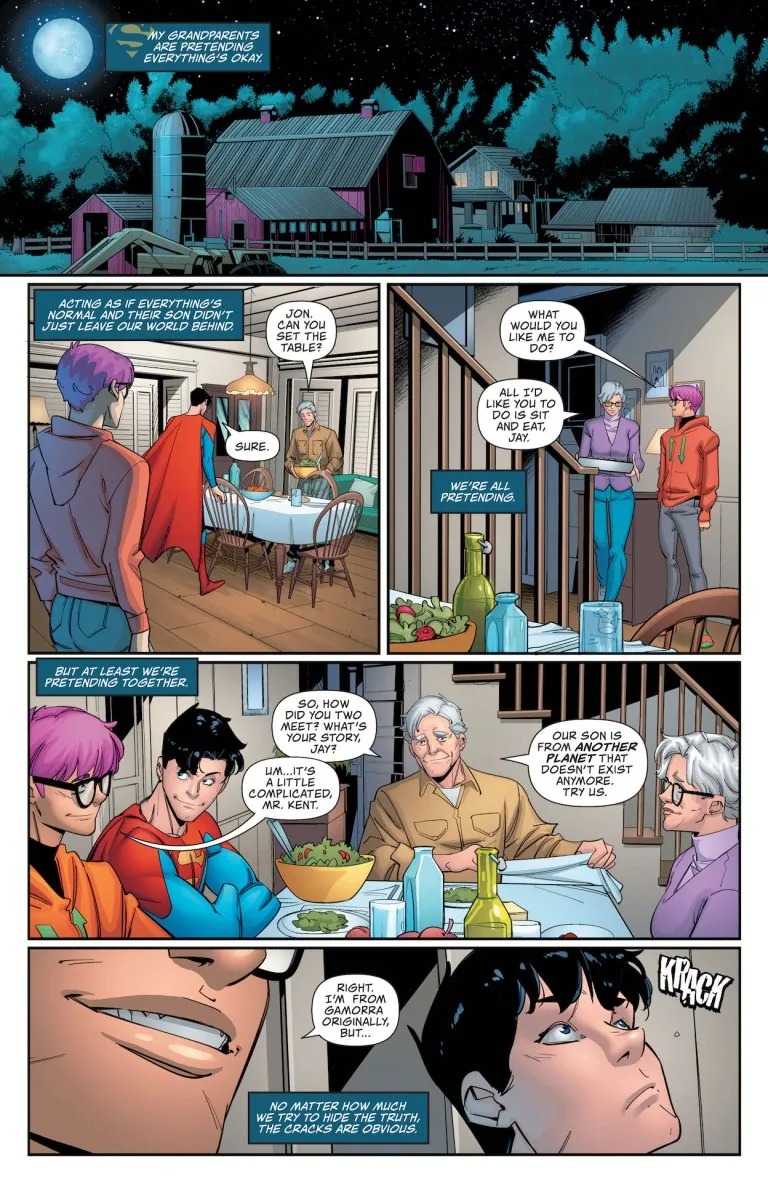 Kal-El has left, and the weight of the world now rests on his son’s shoulders. Powerful forces have been threatened by Jon Kent’s first leaps in his father’s boots. It’s hard to hurt a man of steel, but his loved ones make a much easier target. Jon’s world is about to come crashing down.