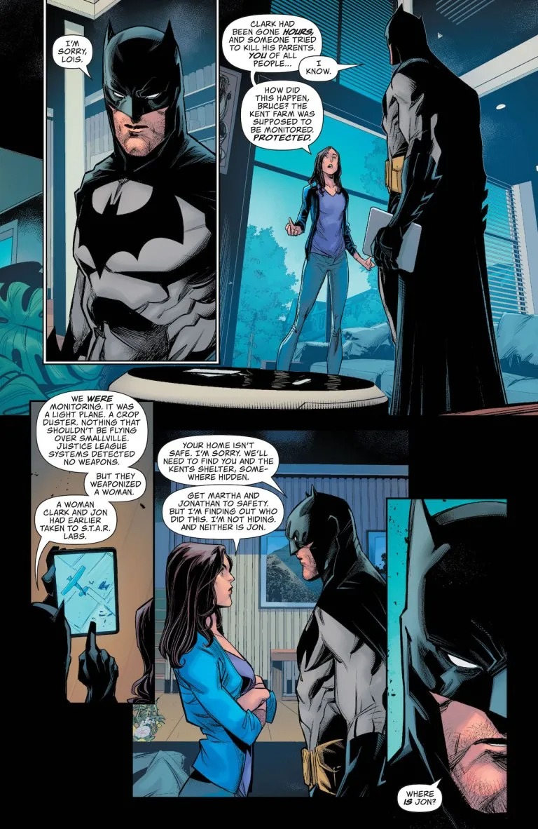 Superman has recovered from the devastating attack against him. After the life-changing events of issue #5, Jon Kent and his new ally Jay Nakamura are ready to strike back. They are on a collision course with the type of power that is used to swatting problems out of the way. But Superman is not so easily swatted!