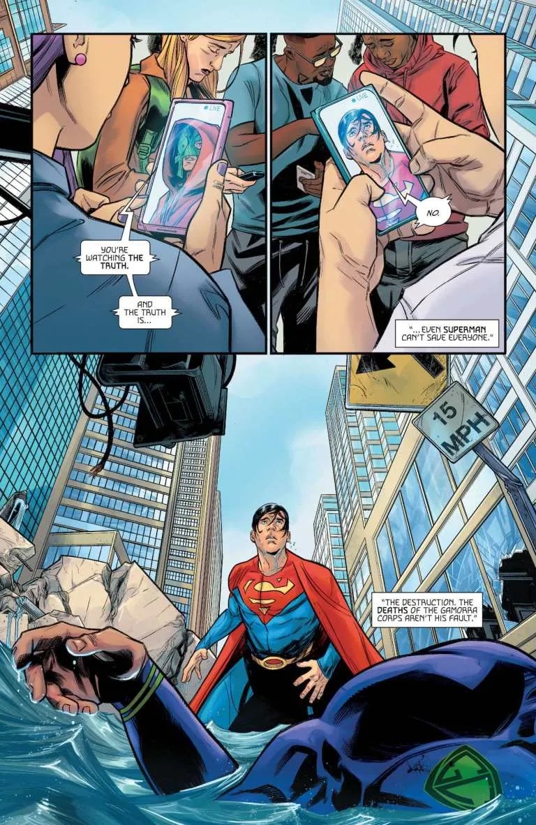 Superman has recovered from the devastating attack against him. After the life-changing events of issue #5, Jon Kent and his new ally Jay Nakamura are ready to strike back. They are on a collision course with the type of power that is used to swatting problems out of the way. But Superman is not so easily swatted.