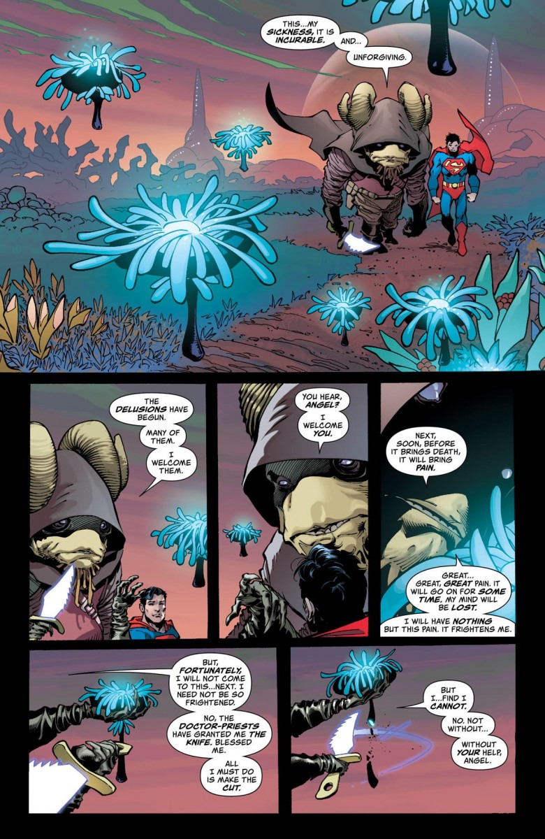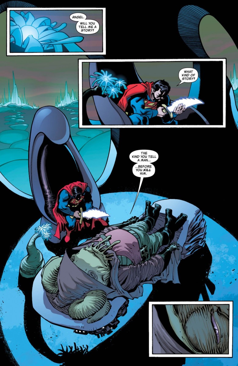 “Darkseid offers to help Superman in his quest to rescue the Earth girl Alice-but that help comes at a cost! Then, the Man of Steel is treated to a vision of his life at home with his friends and family-but a far grimmer reality is about to in.”