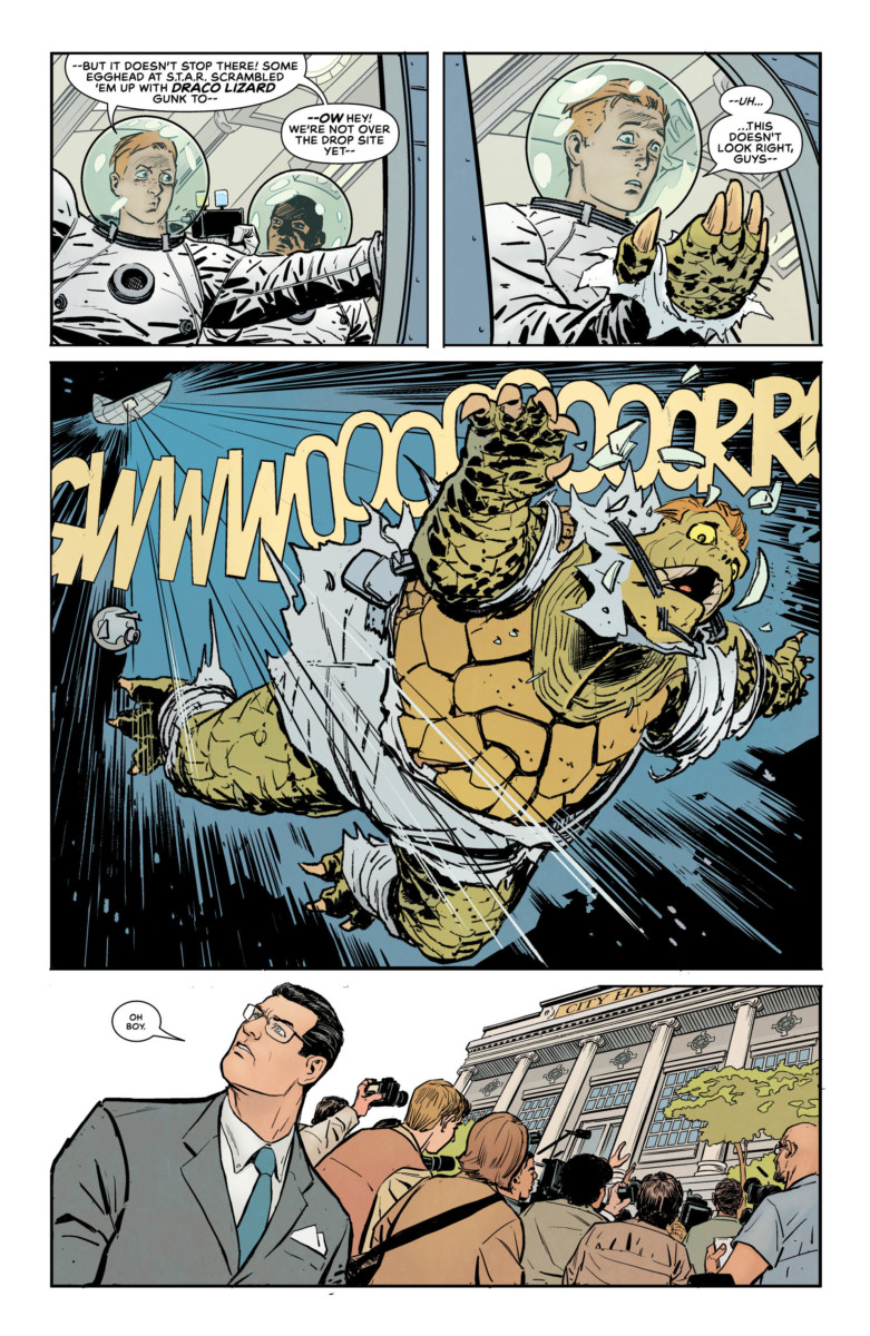 Wait, we’re getting ahead of ourselves. Jimmy Olsen lives! Superman’s best friend and Daily Planet photographer Jimmy Olsen tours the bizarre underbelly of the DC universe in this new miniseries featuring death, destruction, giant turtles and more! It’s a centuries-spanning whirlwind of weird that starts in Metropolis and ends in Gotham City.